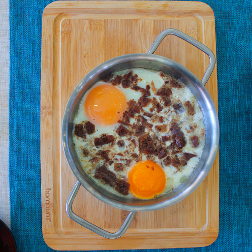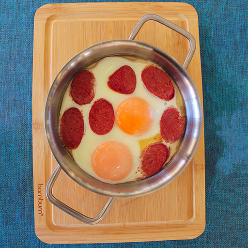 TEREYAĞI VE KASAP SUCUK İLE KIZARTILMIŞ İKİ KÖY YUMURTA...