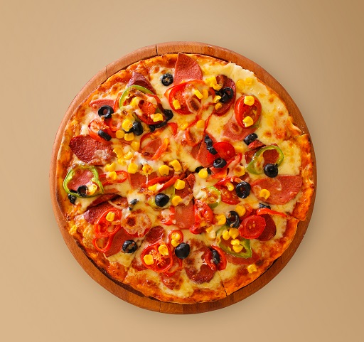 DOMATES SOSU, MOZZERELLA PEYNİR, SUCUK, SALAM, SOSİS, MANTAR, SİYAH ZEYTİN, MISIR, YEŞİL KIRMIZI KAPYA BİBER, DOMATES.