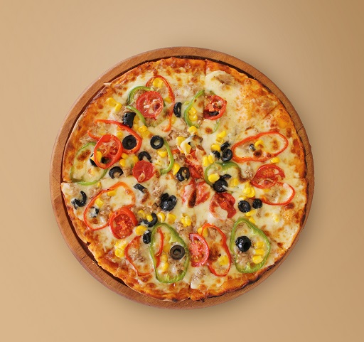 DOMATES SOSU, MOZZERELLA PEYNİRİ, ÇERİ DOMATES, MANTAR, RENKLİ BİBER, MISIR, SİYAH ZEYTİN.