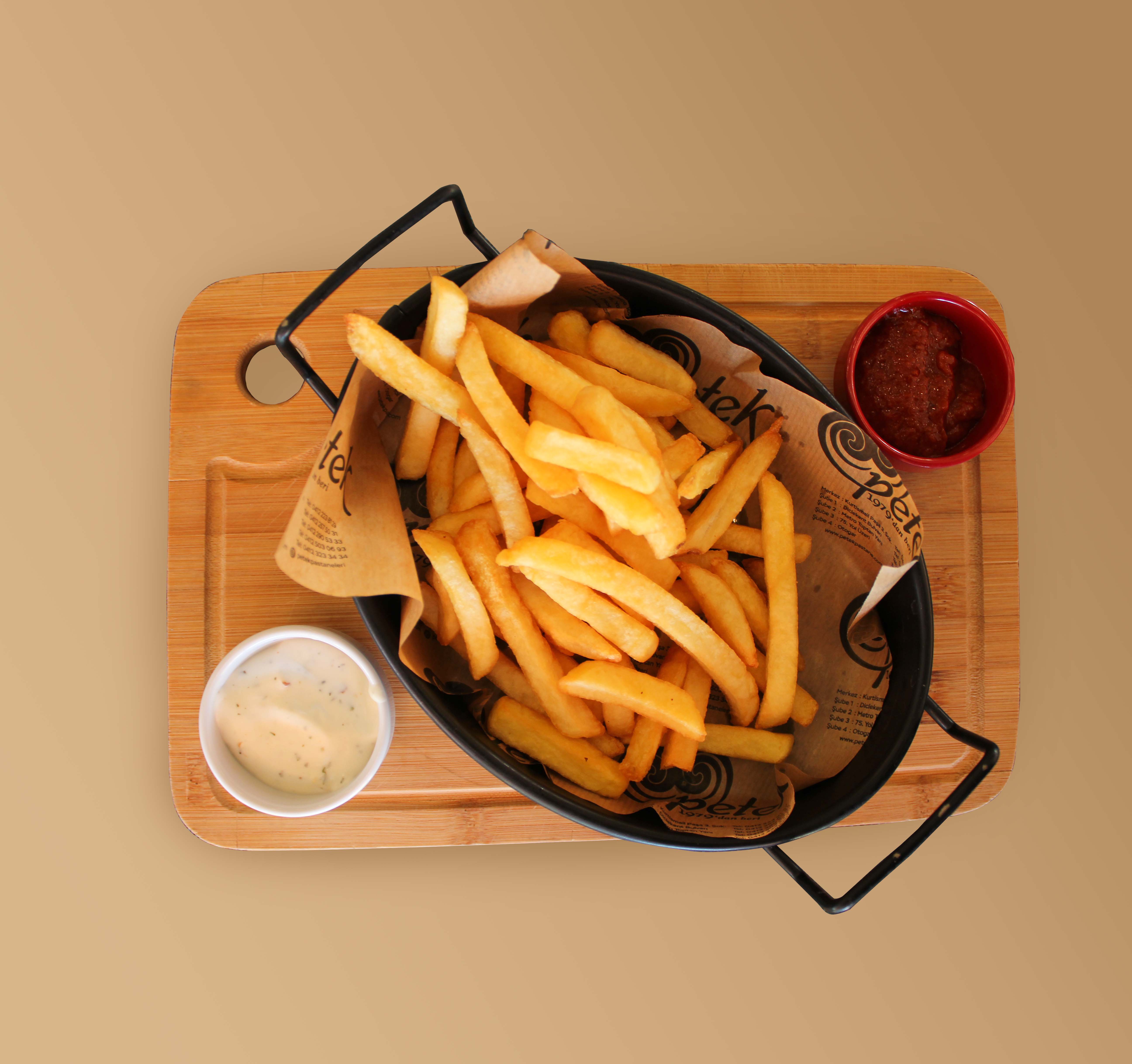 SALATALIK TURŞUSU, ATOM MARUL, ACI SOS, DİP SOS, PATATES KIZARTMASI İLE SERVİS EDİLİR.