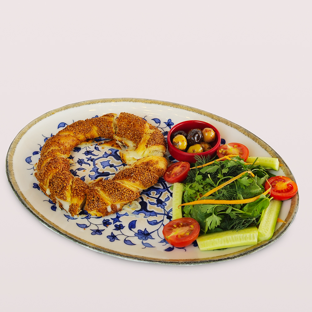 SİMİT ARASI BEYAZ PEYNİR, KAŞAR PEYNİRİ, DOMATES, SALATALIK, ZEYTİN TABAĞI VE MEVSİM YEŞİLLİKLERİ 1 ADET ÇAY İLE SERVİS EDİLİR